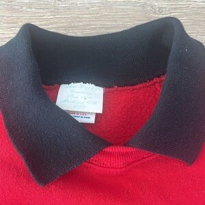 Adorable vintage Just Ducky Creations collared sweatshirt featuring a black faux-fur Scottie dog with a red bow and gold embroidered leash. Classic 1980s Jerzees Made in USA sweatshirt with the signature cozy fleece interior and timeless cottagecore charm.