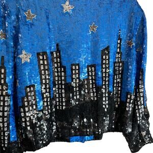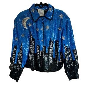 Vintage Just Fabulous Starry Night City Scene Full Sequin Jacket Medium AS IS