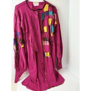 Vintage Just Me Charlene Patchwork Cardigan Duster Sz XL Snaps Pockets Relaxed