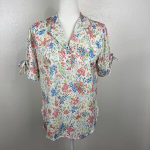 Vintage Just Oscar Blouse Women Large White Pink Floral All Over Print S/S Top