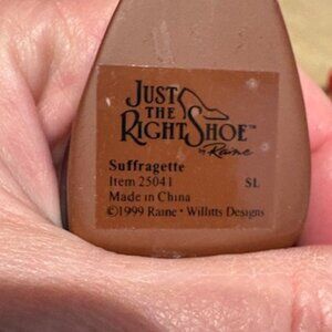 Display this vintage collectible shoe 'Suffragette' as a reminder of the hard fought and won right to vote. From the 'Just the Right Shoe' collection by Raine, this resin shoe with remarkable details was made in 1999. A great gift for the historian or shoe lover on your list. No box or COA. Feel free to ask questions and enjoy!