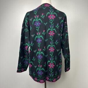 Vintage Justin Allen Floral Knit Sweater Size M Mock Neck Cottage Boho Eclectic