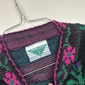 Vintage 80s floral knit funky fun colorful sweater with mock neck and oversized fit.