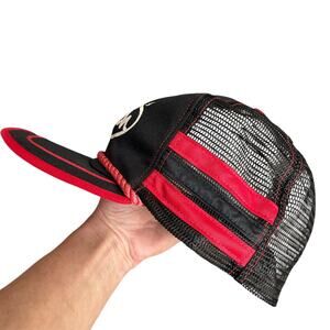 Vintage Justin Boots 3 Stripe Snapback Hat Trucker Mesh Large Black Red No Foam