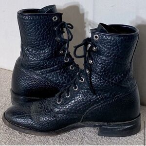 Vintage Justin Boots Black Pebbled Leather Lace Up Packer Boots 6