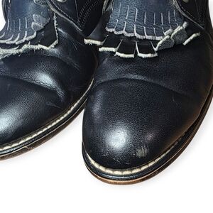 Genuine vintage wear – fringe is distressed and some creasing/scuffing present (especially at toe). The inside lining has wear. These boots have character and are ready to ride again!