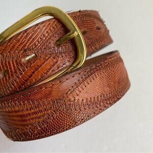 Vintage Justin Lizard Leather Statement Belt Brown Reptile Western Unisex Mens Womens 28