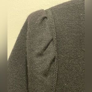 This 100% pure virgin wool black blazer offers a chic, collarless design with a rounded neckline and a cropped silhouette. Its subtle textured rope detail adds a touch of sophistication, making it a versatile addition to any wardrobe.