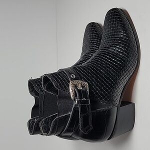 Vintage Justin's Ankle Boot Bootie Lizard Black Leather Pull-On Cowgirl 6.5 M