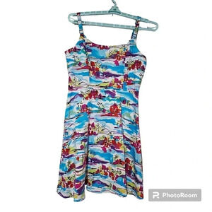 Vintage K & Company Dress Womens 8 Petite Yellow Pink White 90s Mini Abstract