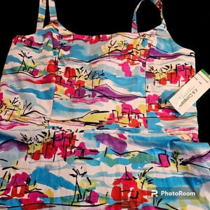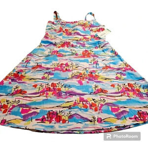 Elevate your wardrobe with this colorful and flirty K & Company mini dress. Perfect for any occasion, the dress features a scoop neckline, zipper closure, and strappy sleeves. The abstract pattern and empire waist give it a playful, bohemian look, while the A-line silhouette and lightweight fabric make it comfortable and easy to wear.