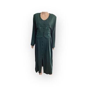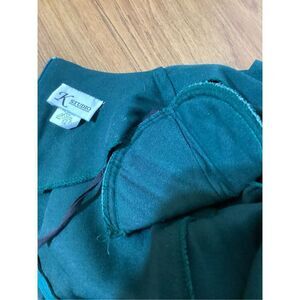 Excellent Vintage Condition, Dark Green color, mock tie back vest, zippered back, pearl accents, covered buttons, tagged size 18, see measurements for custom fit.