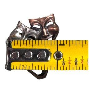 This vintage K & T theater mask brooch captures the essence of drama with its intricate design and mixed metal finish. Its size and weight make it an elegant accessory for those who appreciate theatrical art.