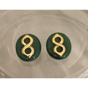 Vintage KAI-YIN LO Sterling Silver Vermeil Jade Infinity Earrings Clip KYLO