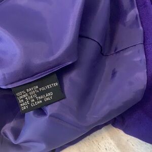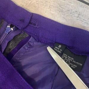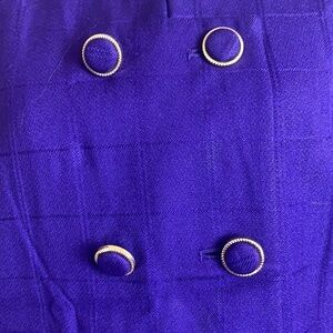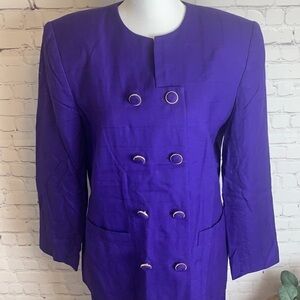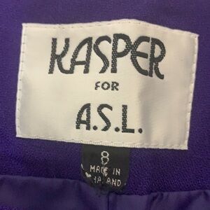 Vintage 80's fab Kasper for ASL Blazer and skirt set in beautiful jewel tone purple. This set totally gives Kim Cattrall in Mannequin vibes! Blazer has purple and gold buttons and is collarless. Skirt has button and zipper closure. Both are fully lined and in very good condition. Size 8. Measurements in photos.