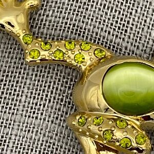 Vintage KC Brooch Gold Tone Frog Green Faux Cat Eye Jelly Belly Green Rhinestone