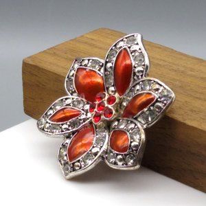Vintage KC Enamel Flower Brooch with Crystal Center, Kenneth Cole Dimensional
