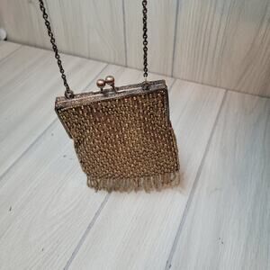 Vintage K.C. Malhan Beaded Sequined Handbag Gold Evening Bag Hand Beaded Boho