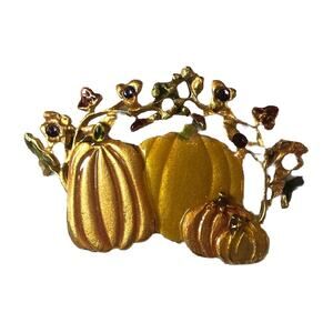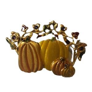 Vintage KENNETH COLE Fall Halloween Enamel Wreath Pin Leaves & Pumpkins VGC