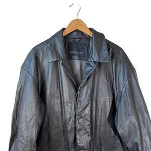 Vintage KENNETH COLE Mens Genuine Leather Coat Jacket Black Large Classic Grunge