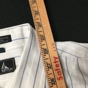 Vintage KETCH Short Sleeve Button Up Shirt Men's 16. beige Striped Single Needle