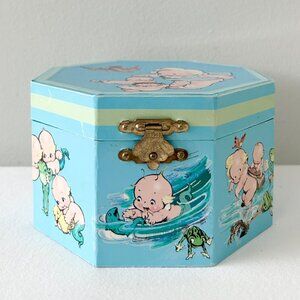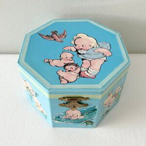 Vintage KEWPIE Baby Jewelry Box Musical Octagon Swan Lake Schylling Jesco 2004