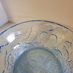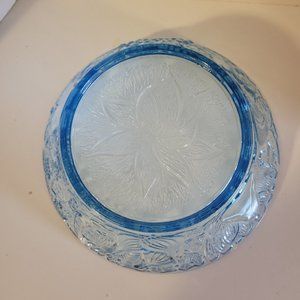 Vintage KIG Indonesia Floral Light Blue Pressed Glass 8 5/8" Fruit Serving Bowl. There is no manufacturing information on it. Gently used. No chips or cracks. Photos are an important part of the description.