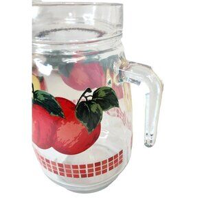 Vintage KIG Malaysia Clear Glass 48oz Handled Pitcher 4 juice glasses, Red Apple