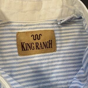 Vintage KING RANCH Banded Collar Striped Blue/White Long Sleeve Shirt Size Large