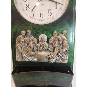 Vintage KIRCH Battery Wall Clock Mail Key Sorter Jesus At Last Supper 24" Green
