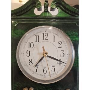 Vintage KIRCH Battery Wall Clock Mail Key Sorter Jesus At Last Supper 24" Green iridescent finish. 3 mail sort slots. 4 key organizer hang spots. Gold rose details on the slots. Molded Plastic. This Laurel kitchen clock has been tested and works. Beautiful clock would be fantastic in a mCM kitchen or for a prop. I feel like I've seen this in my grandmother's kitchen. In great vintage condition. No chips or cracks. A couple of the teeth on the plastic hanger on the back look to be broken. Please see photos for detail, condition and measurements. Ask me any questions. I want you to love your purchase.