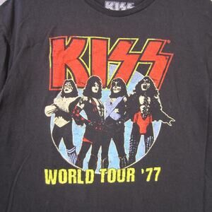 Vintage KISS Shirt Mens Extra Large Black World Tour '77 Band Rock Music Concert 70s