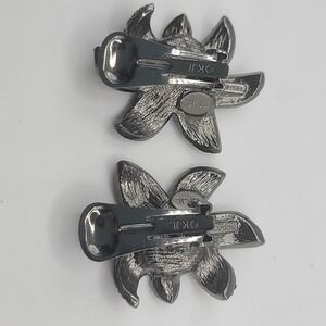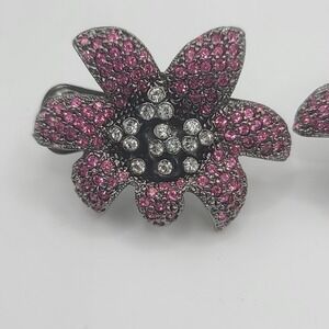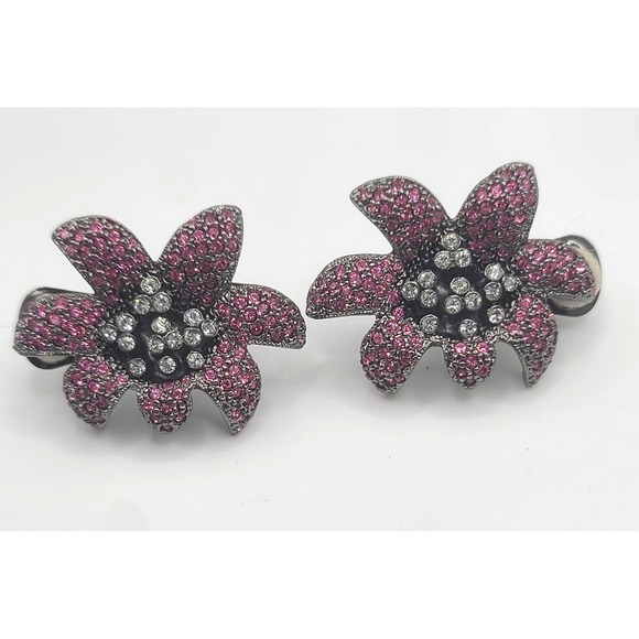 Vintage KJL Earrings Pink Purple Flower Clip Ons Signed
