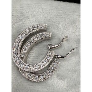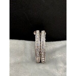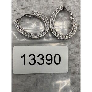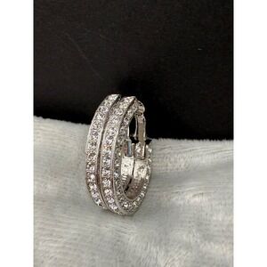 Vintage KJL Earrings Signed Clip Ons Crystal Bling Hoops