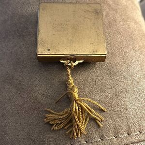 Lovely vintage K&K Kotler Kopit rhinestone cosmetic compact dating to the 1940's. This is a loose face powder compact still with its original powder puff and gold silk tassel cord. K&K is known for their distinctive "fastener catch" that keeps the compact from popping open. The compact is marked with a patent number, this number is for that specific fastener catch design. Kotler Kopit is made in the USA.