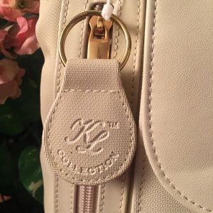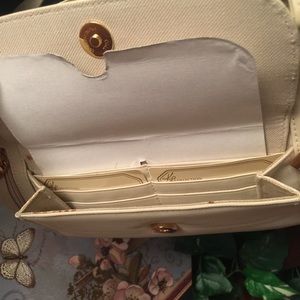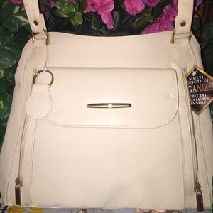 ❣️NWT Auth vintage Kathy Lee organizer bag. Multifunctional w/special features. KL Key fob included. Cream w/gold hardware. Snap flap is magnetic. Interior has discoloration from storage, (pictured) exterior is brand new & Has outside snapping pocket w/4 CC slots, deep space for Items & 2 zippered pockets on each side. Bag has 2 zippers on top leading into bag & featuring ID slot, & smaller zip pocket,plus 2nd side. Super roomy! US patent 4453294/TM 00614521. From clean&smoke free environment❣️