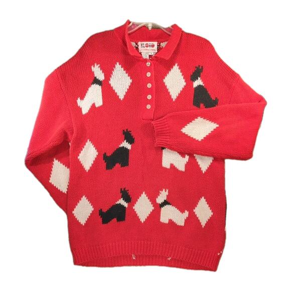 Vintage KLOKO Scotty Dog Sweater Red Ramie Polo Men’s M Hong Kong 80s 90s Rare