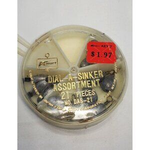 A Vintage K-Mart Dial-A-Sinker Assortment Twist Lock, a must-have for any angler. Perfect for changing sinker weights on the go. Ideal for saltwater or freshwater fishing.