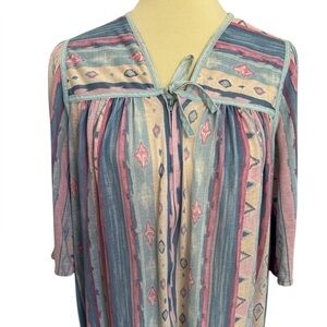 Vintage KOMAR Retro 80s 90s Maxi Zip Closure 1/2 Sleeves Nightgown Size Large