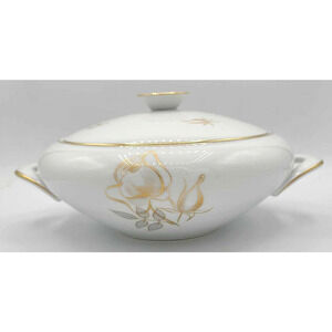 Vintage KPM Krister Germany Covered Serving Bowl. Gold Rose Design