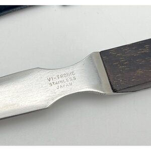 This vintage letter opener features a sleek stainless steel blade, a wooden accented handle, and a protective leather sheath. Ideal for adding a touch of sophistication to your desk.