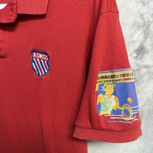 Vintage K-Swiss 90s Taiwan Tennis Open Polo T Shirt Red Medium 19.5x24