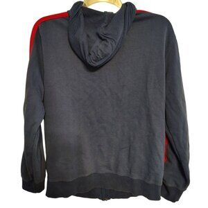 This vintage K-Swiss hoodie features a stylish blue base with red and white stripes. Made from a comfortable cotton blend, it's perfect for everyday wear. Ideal for those who appreciate retro fashion. This retro zip front measures 27" in length from the top seam of the shoulder to the bottom hem and 20" from pit to pit. Please see all photographs as they are part of the description. Shipped with USPS Ground Mail.