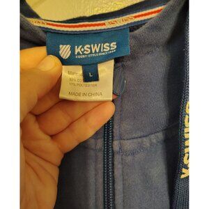 Vintage K-Swiss Large Zio Front Hoodie, Blue, Red White Stripe, Cotton Blend Y2K