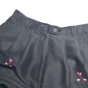 Vintage KT Golf Capri Pants Womens 8 Black Golf Palm Tree Embroidery Pleated