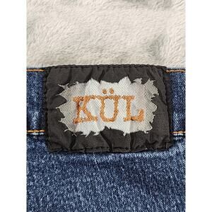 Vintage KUL USA Ribbon Lace Side Detail Mid Rise Flare Jeans Size 11 Blue Brown