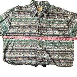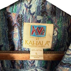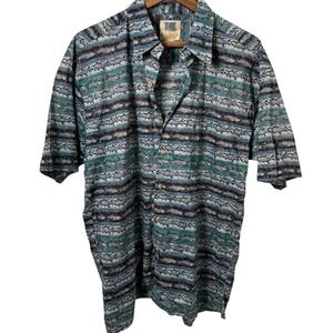 Vintage Kahala Hawaiian Shirt Handcrafted Stripes & Fish Pattern Size Large
