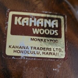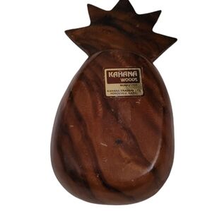 Good Vintage condition. Vintage - Kahana Wood Carved Pineapple Monkey Pod Tray. Made in Honolulu Hawaii. 9.5" long 5" wide.