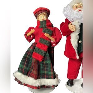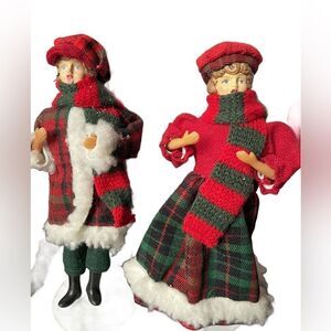 Very vintage bundle of Carolers, Santa & Mrs. Clause. Comes with all four figurines on their own stands. Add to your decorative Christmas scene with these beautiful pieces. Santa has a little issue with his left hand, but overall they are in great vintage condition.