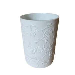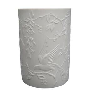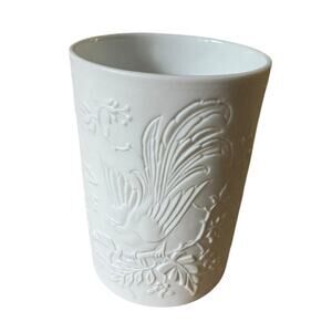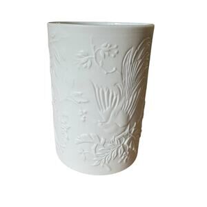 Vintage Kaiser W. Germany Bisque Mini Vase White Relief Birds Floral #68 Decor